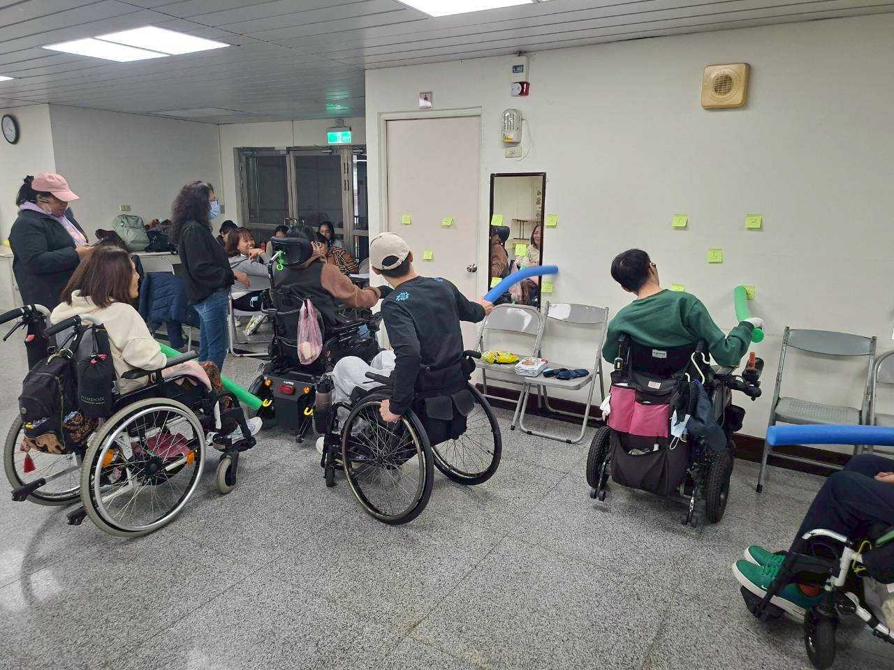 課程最後,治療師帶著大家做了彈力繩的肌力練習